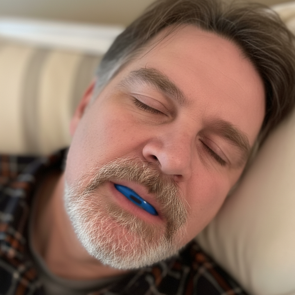 NattSkenan angriper problemet – den håller käken i rätt läge så att luftvägen förblir öppen hela natten. Resultatet? Mindre snarkning, djupare sömn och en tystare natt – redan från första användning.